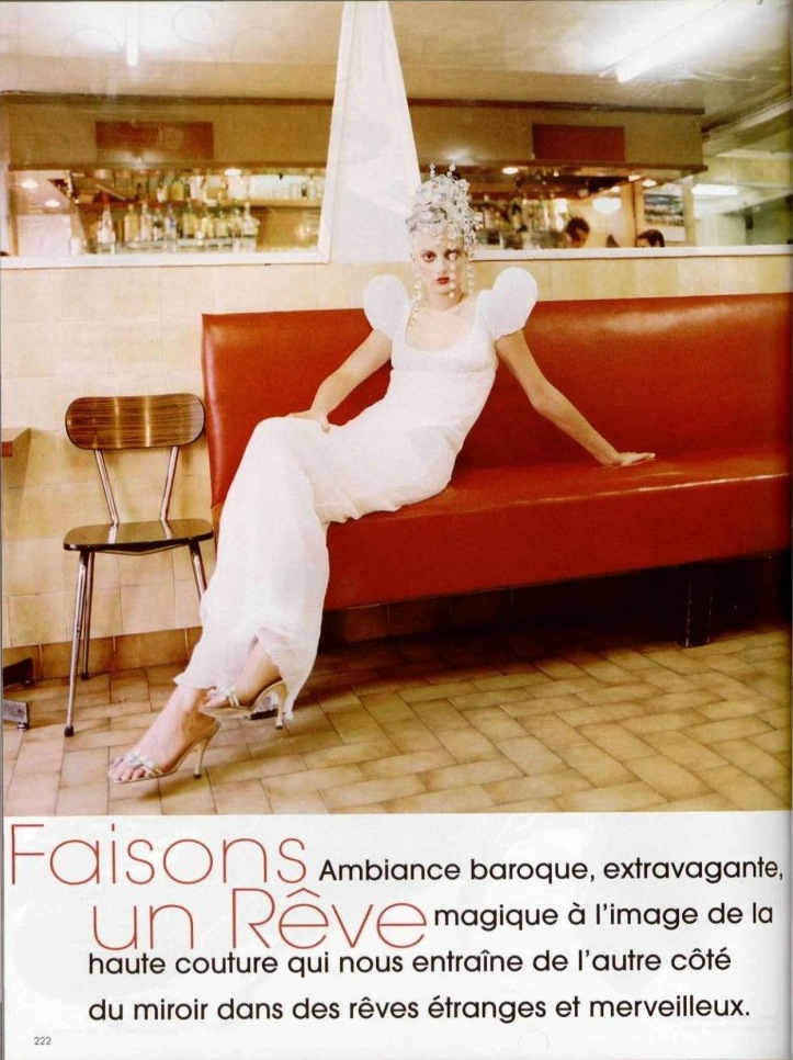 Just for fun, here are a couple editorial images of Fall 1996 Givenchy Couture. The first, from W magazine, features Esther De Jong (slightly cropped by my scanner), the second is from an editorial in L’Officiel showcasing the season’s Givenchy couture: