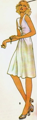For the purposes of this post, I’m going by my personal definition of disco style: glam evening wear that’s more party girl than society doyenne, all from the mid-’70s to the early ’80s. As I edited down my initial list I found the best designs shared elements like fluid draping and halter necks or one-shouldered bodices. Also, of the seven patterns, three are jumpsuits or give the impression of being a jumpsuit. Here’s my disco patterns best-of, ordered chronologically: