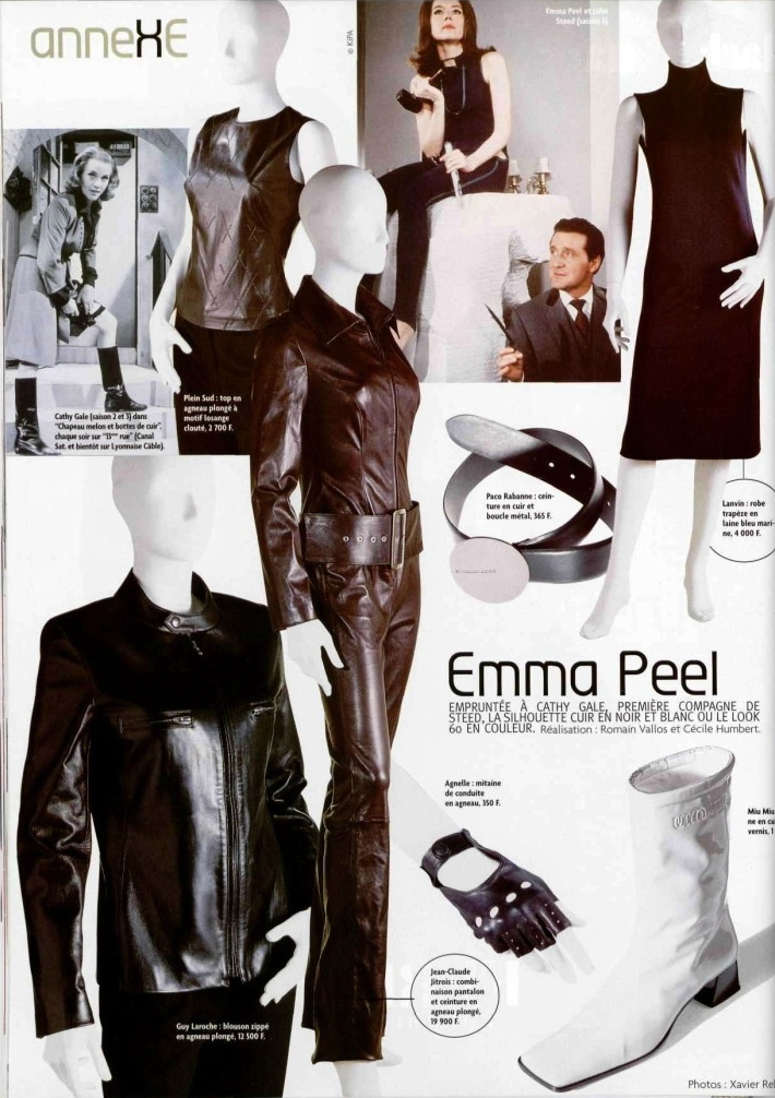 L’Officiel included the black leather version in an “Emma Peel” fall trend feature—the Ralph Fiennes/Uma Thurman film The Avengers had opened late that summer: