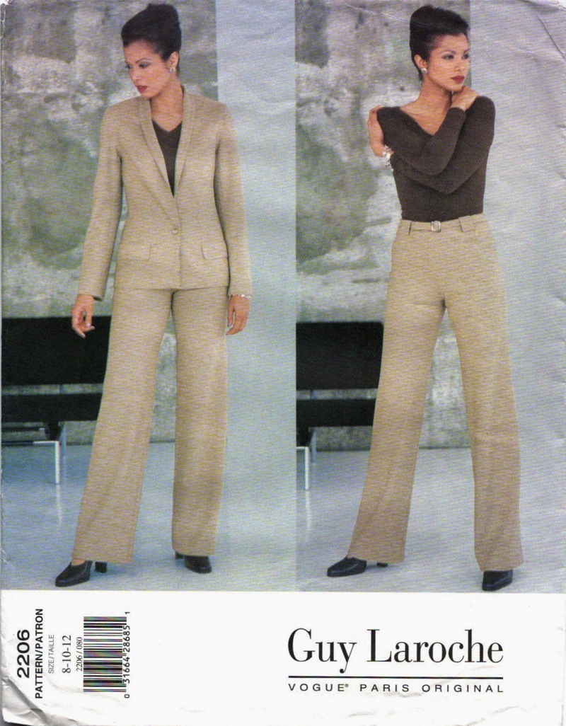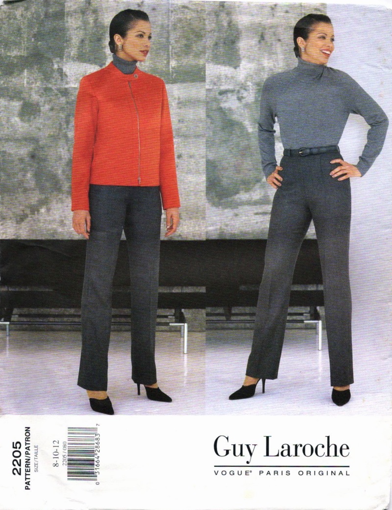 The third selection, Vogue 2205, is another pantsuit, this one with flat-front pants and a jacket with exposed zippers: