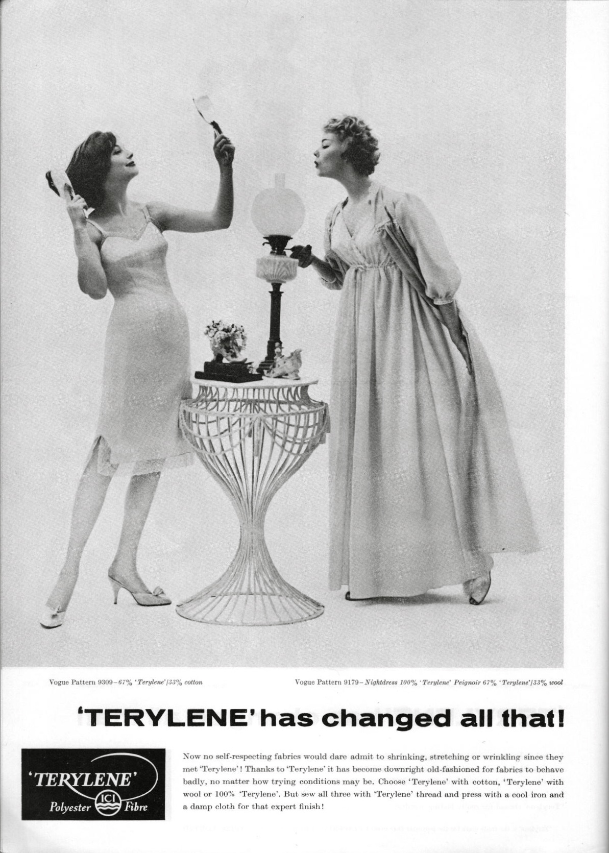 (Terylene was produced by Imperial Chemical Industries. The patterns are Vogue 9309 and Vogue 9179.)