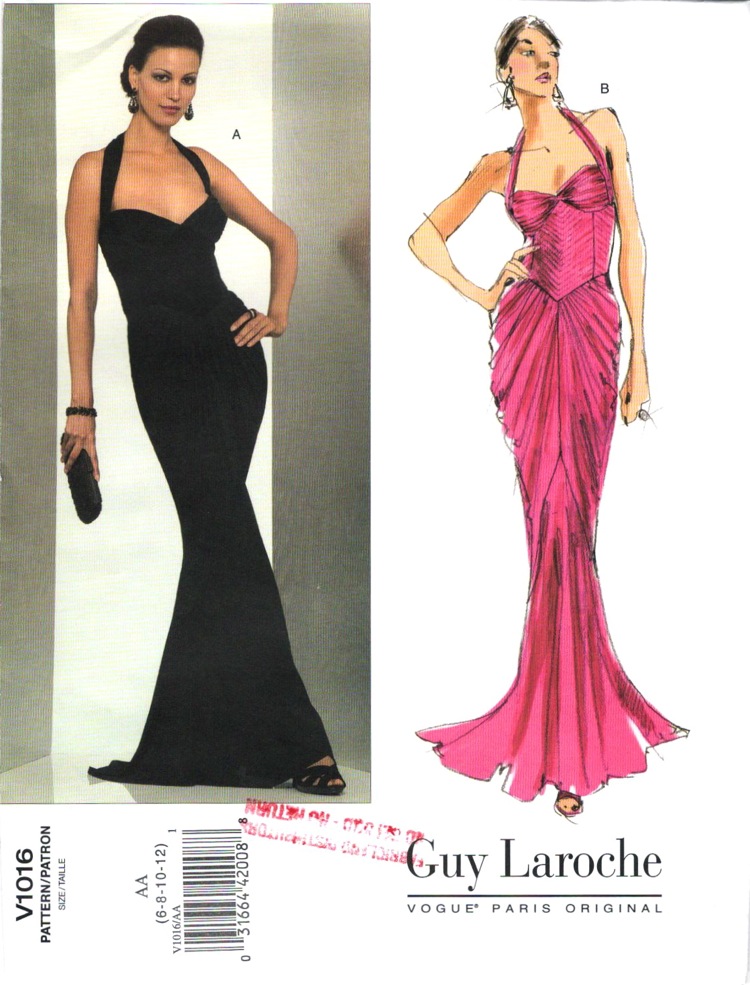 Vogue Patterns’ selection is Vogue 1016, a slinky, halter-necked evening gown: