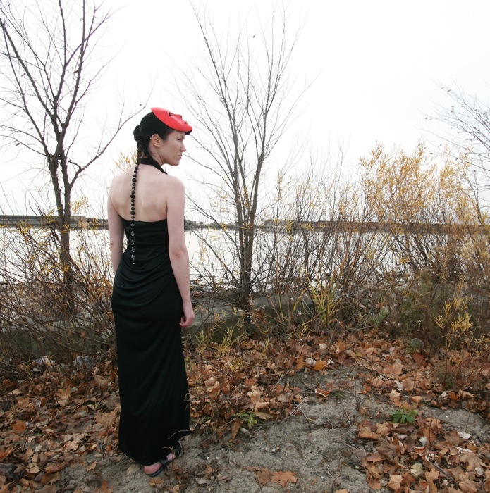 For fabric, I used black Qiana from a deadstock bolt found on Etsy. Qiana is a vintage nylon, a synthetic silk with a little stretch. It’s even in keeping with the ‘exotic’ Qs of the fantasy series.