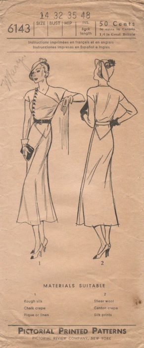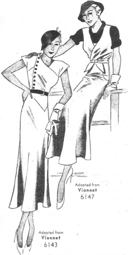 This 1932 Pictorial Review design for an asymmetrical day dress was adapted from Vionnet. The skirt and applied front are cut on the bias: