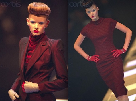 I had planned to make the dress in my default black, and had even bought some mesh for the contrast cowl neck. But when I started looking back over runway photos from Givenchy’s neo-noir Fall 1998 ready-to-wear collection, I was struck by the palette of neutrals, electric blue, and especially the combination of oxblood with red.