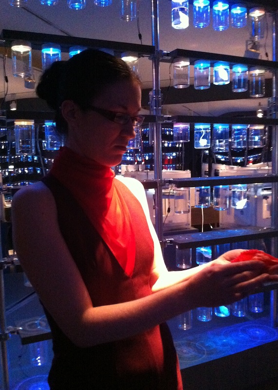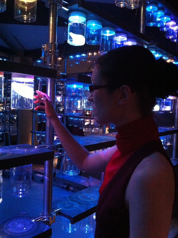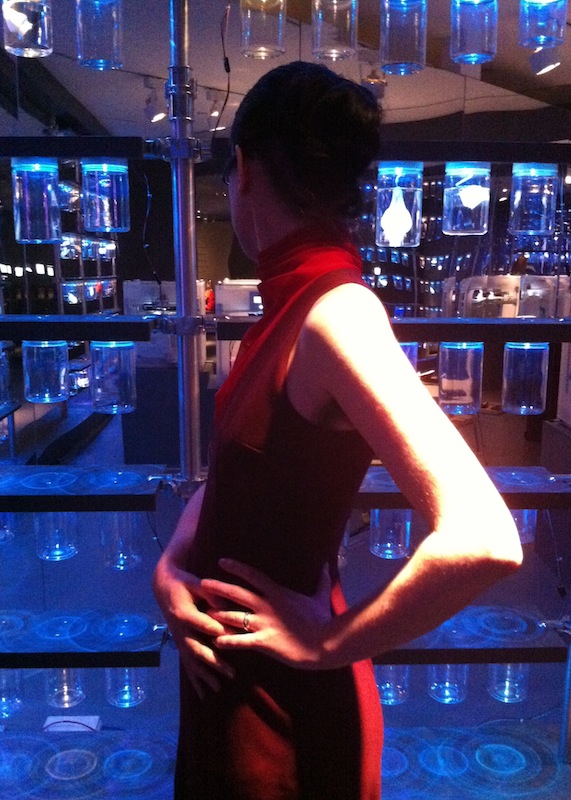 Naomi took some photos of me upstairs at an extension of the Cronenberg show called Body/Mind/Change (BMC). Visitors to the biotech facility BMC Labs can observe the production of personalized POD (Personal On-Demand) implants, which are held awaiting pickup by their hosts. The BMC Labs facility is still open if you’d like to create your own POD implant: