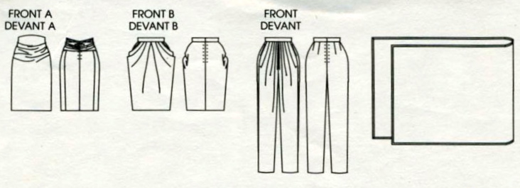 Vogue 1962 provides the bottoms shown on Vogue 1961: a high-waisted skirt and softly pleated skirt or pants: