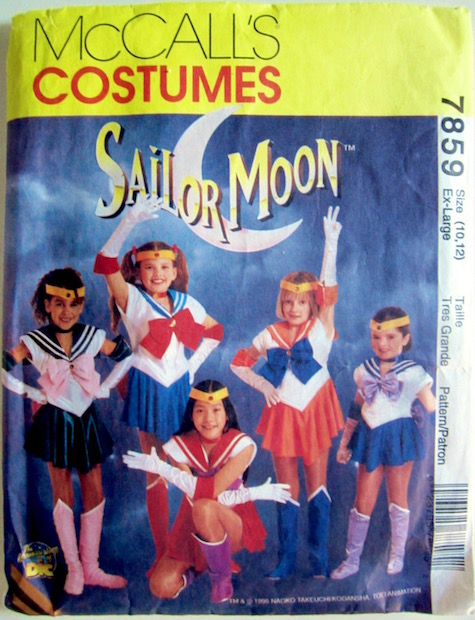 ’90s costume patterns start to show the influence of Japanese television shows—Mighty Morphin Power Rangers, Masked Rider, and Sailor Moon. This Sailor Moon costume pattern came in children’s and girls’ sizes: