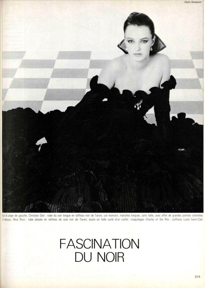 With the advent of goth—or the New Romantics—in the late 1970s, fashion in a gothic mode began to show the influence of both romanticism and contemporary subculture. Nina Ricci’s romanticism turned dark in the early 1980s. I like to picture Vogue 2582 with granny boots and Siouxsie Sioux hair: