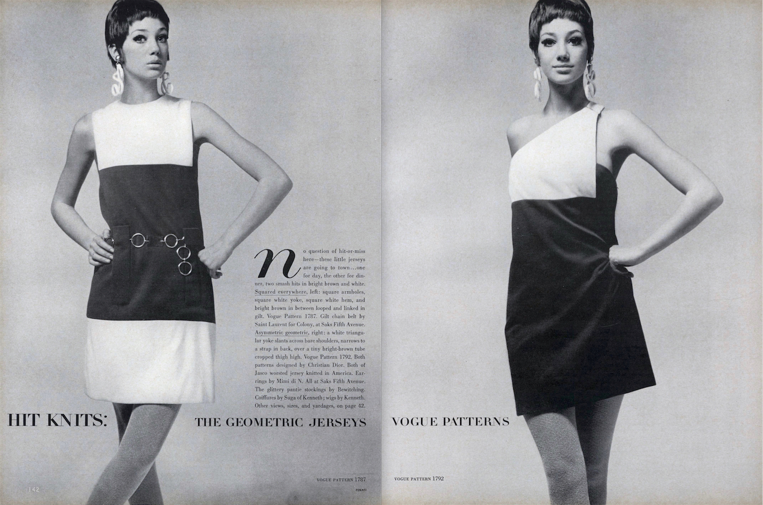 Irving Penn’s “Look Marvellous” editorial, showcasing clothes in American fabrics, included Berenson in Vogue 7017 and Vogue 7022 (via Youthquakers):