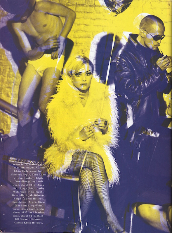 Faux Mongolian lamb coat by Anna Sui, Harper’s Bazaar, August 1995. Photo: Peter Lindbergh.Kirsty Hume wears Anna Sui in Vogue, September 1995. Photo: Arthur Elgort. Editor: Grace Coddington.Karen Elson in Anna Sui, Vogue, June 2003. Photo: Tim Walker. Editor: Grace Coddington. Image: Vogue.com.
