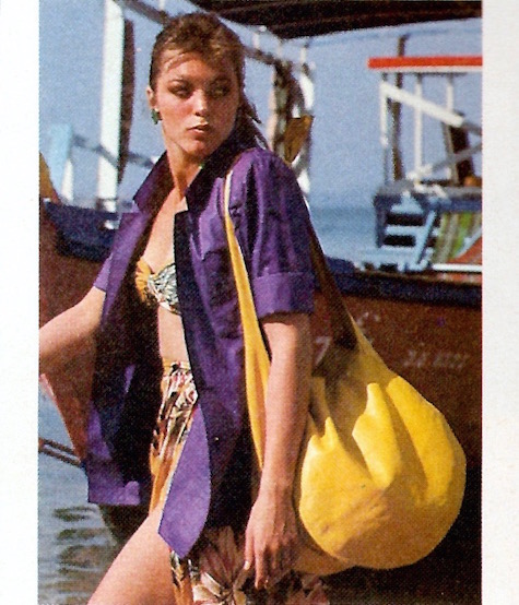 In 1979, Breslau licensed two bag patterns with Vogue. Each design could be made in three sizes. Vogue 2153 is a “draw-stringer and scarf tie-up”: