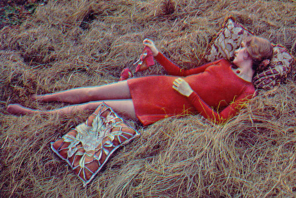 The Spring 1976 catalogue used illustrated photographs to present this DIY series, which also included a hat and shoes (1st page, Butterick 4680; 3rd page Butterick 4681, with Joyce Walker on the right):