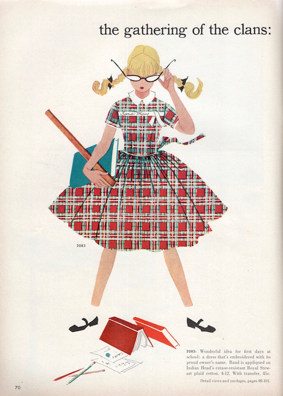 In honour of Tartan Day, a mid-century schoolgirl in the Royal Stewart tartan.
