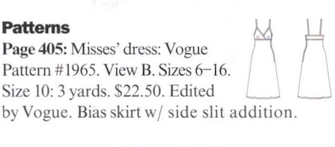 Bonus: Murphy was also featured in this Marc Jacobs pattern hack, shot by Herb Ritts for Vogue. The Marc Jacobs slip dress (Vogue 1965) was shown in icy green velvet from Elegant Fabrics, NYC.