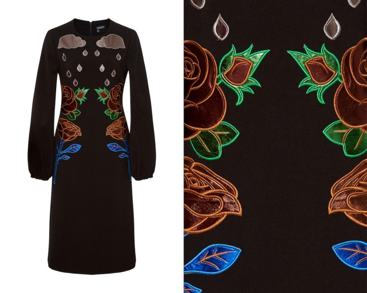 The rose appliqués made other appearances in the collection: on a jumper and wide-leg trousers.