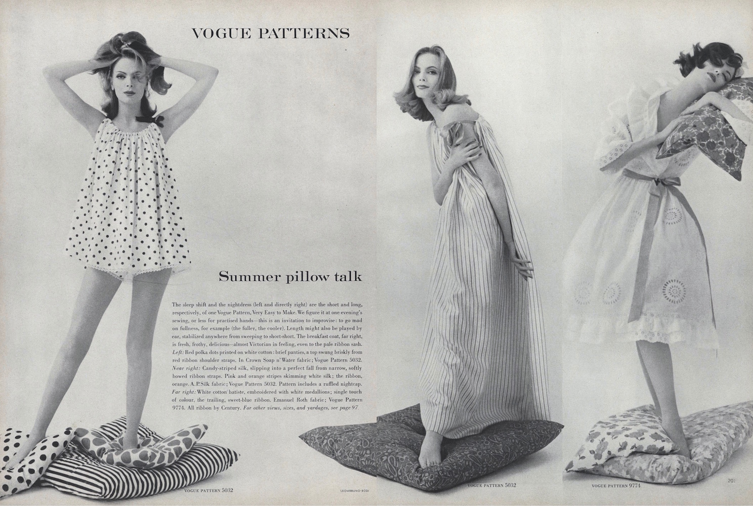 Leombruno-Bodi photographed three models, including Nena von Schlebrügge and Dorothea McGowan, in airy loungewear made from Vogue patterns.