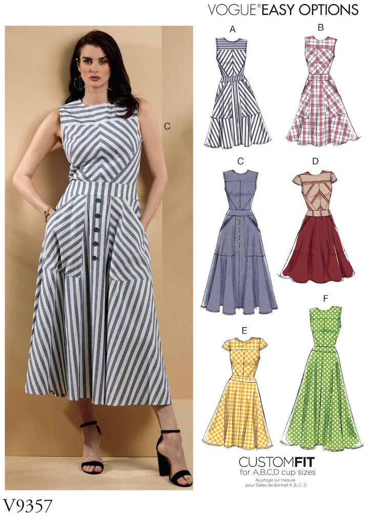 The sleeveless midi dress is a Vogue Easy Options Custom Fit pattern, meaning it is adjustable for 4 cup sizes.