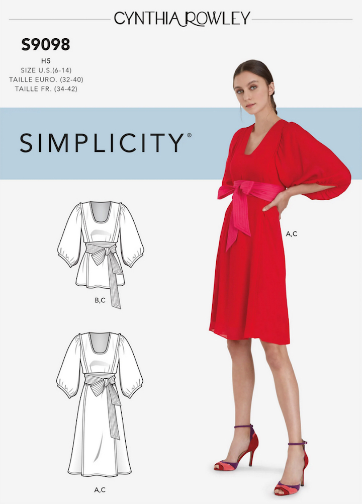 Cynthia Rowley Resort 2019. Model: Sasha Belyaeva. Photo: William Eadon. Editor: Kit Keenan. Image: Vogue Runway.Cynthia Rowley dress in silk-viscose. Image: Cynthia Rowley.Simplicity 9098 by Cynthia Rowley (2020) Tinley dress.
