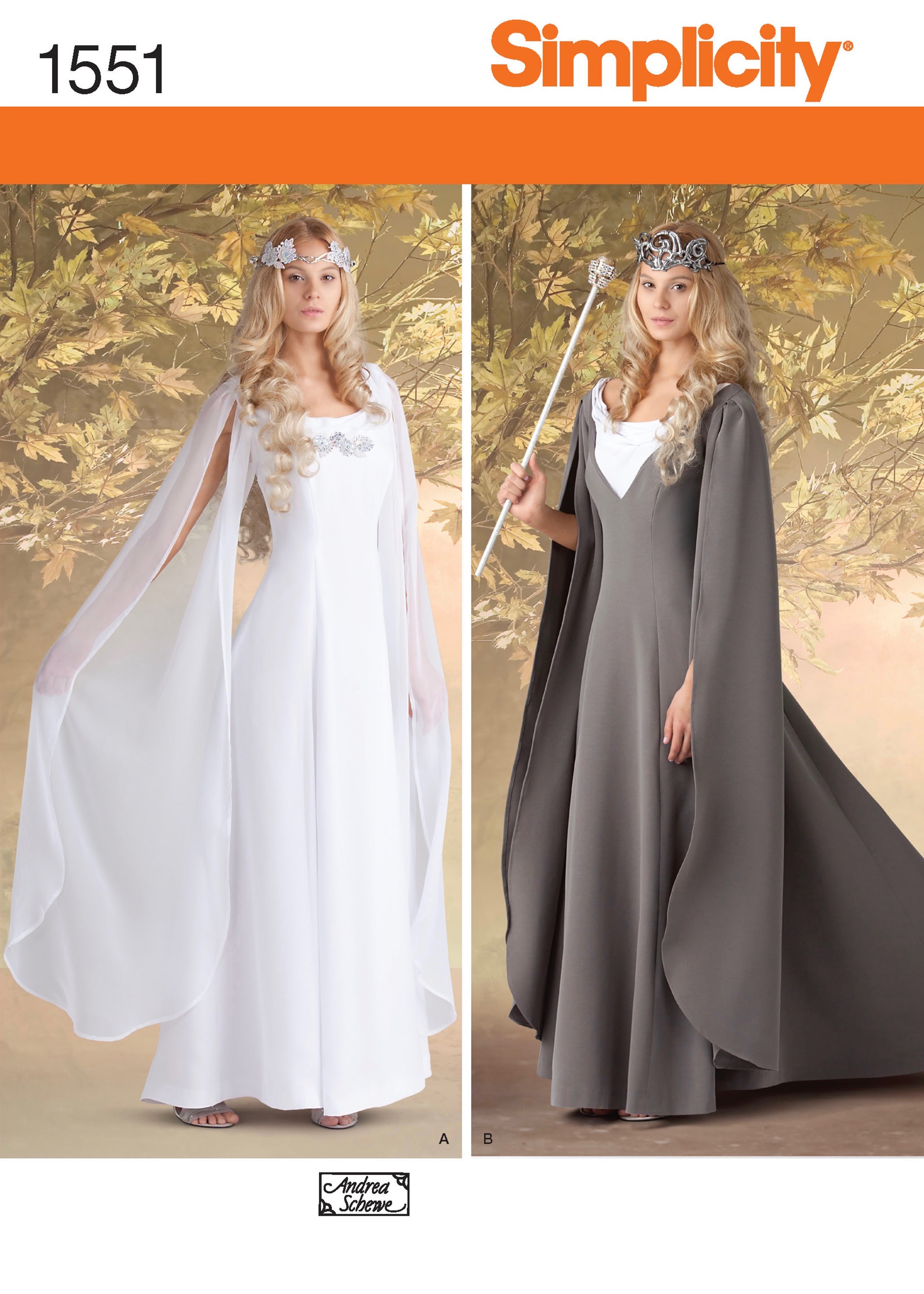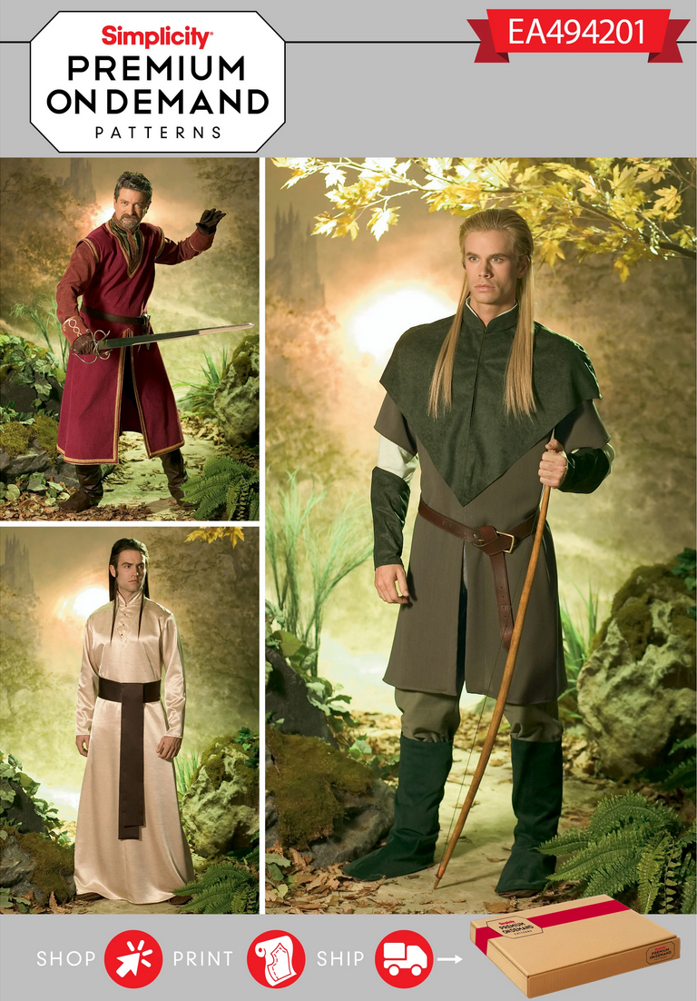 The corresponding men’s costumes are Theoden, Legolas, and Elrond. This pattern is still available as print-on-demand.