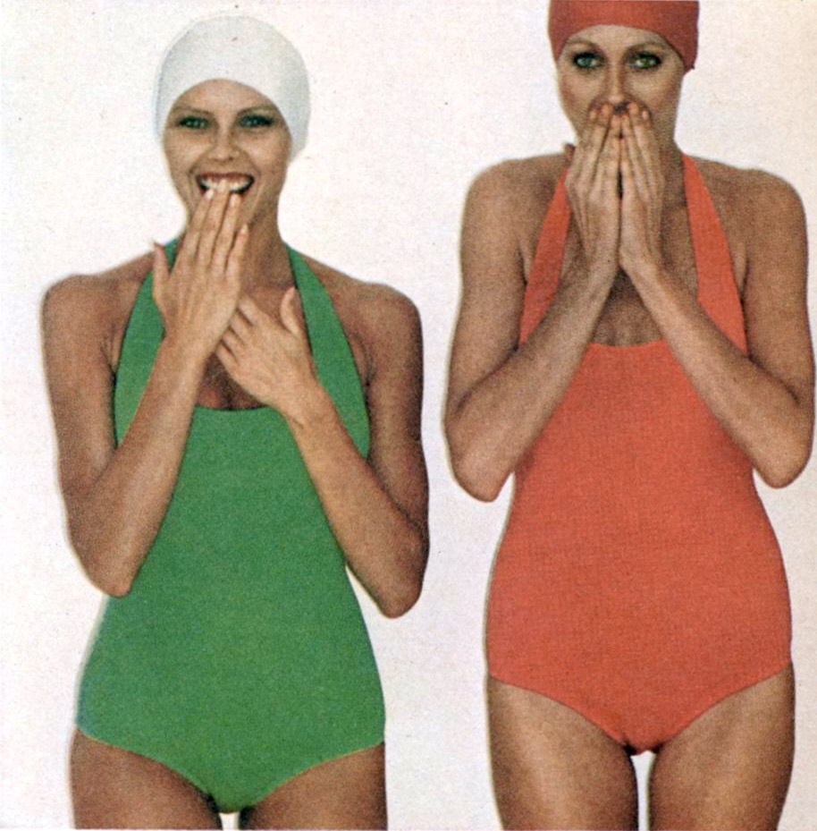 The swimwear styles might have been changing with the decade, but the disco era shines through in the design details of these Summer 1980 swimsuits.