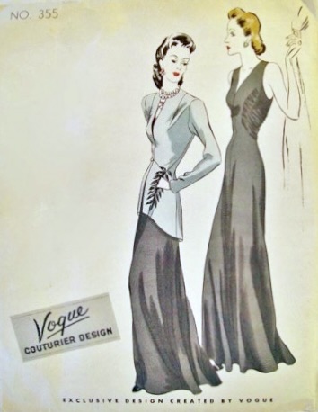Although Vogue didn’t note the pattern number, it is clearly Vogue 355, a Vogue Couturier design that’s now recognizable as one of the early Vintage Vogue reissues. (Note the embellished pockets.)