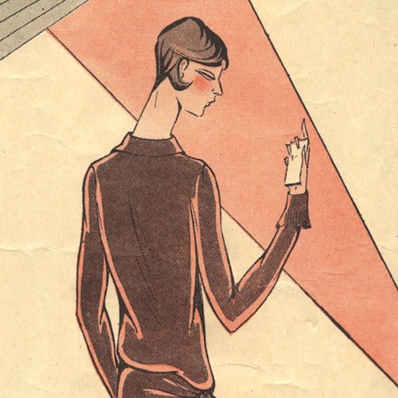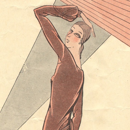 This broader definition of Art Deco encompasses not just surface design and embellishment, but also the period’s stylized silhouette. On the vintage sewing side of things, the Deco-era fashion illustrations are perhaps the most striking expressions of the style, like these two from an early Paris Patterns leaflet: